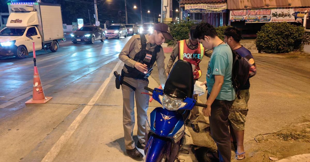 ตั้งจุดตรวจตรวจสอบวัยรุ่นขับขี่รถจักรยานยนต์ส่งเสียงดังก่อความเดือดร้อนรำคาญ เส้นทางกาญจนบุรี/อู่ทอง