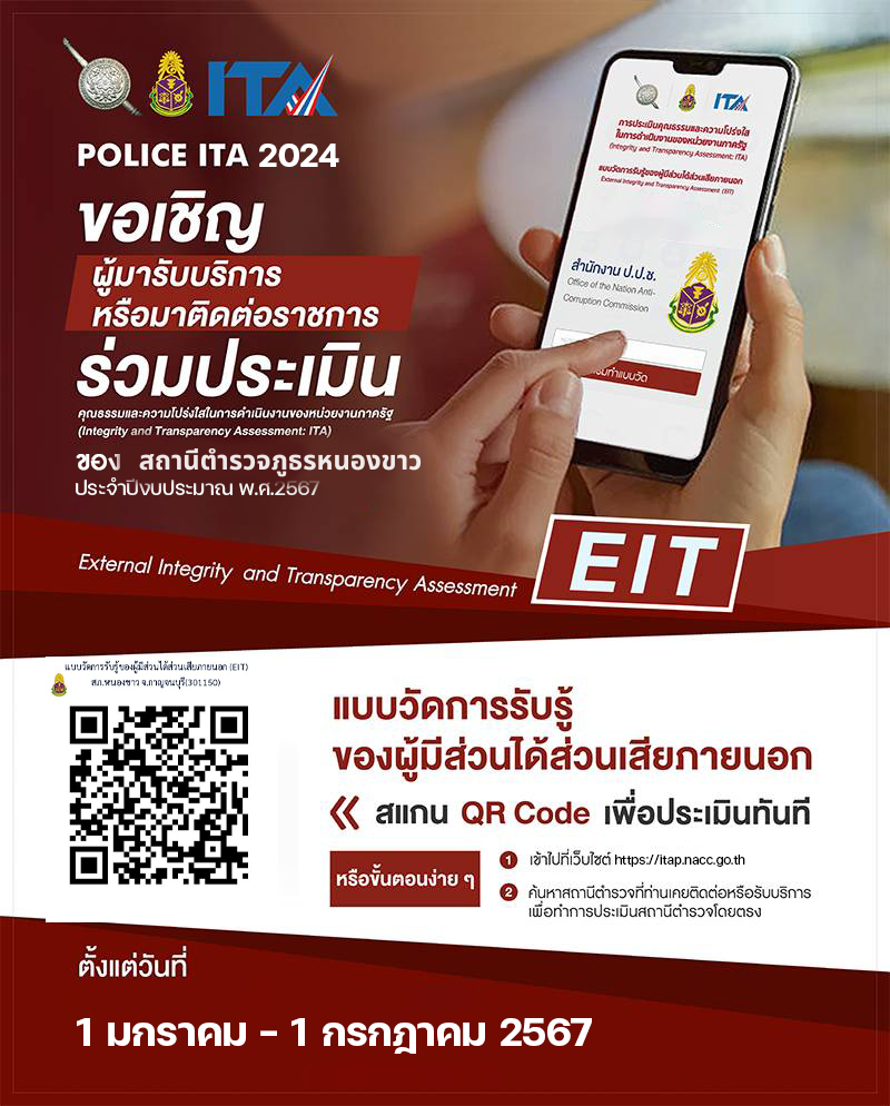 ผกก.สภ.หนองขาว และข้าราชการตำรวจ ร่วมกันประกาศเจตนารมณ์ที่จะสร้างมาตรฐานด้วยความโปร่งใส สร้างองค์กรให้ปลอดจากการทุจริต